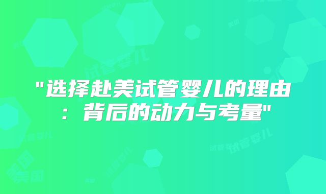选择赴美试管婴儿的理由可能因人而异,但背后的动力和考量却有一些共通之处。