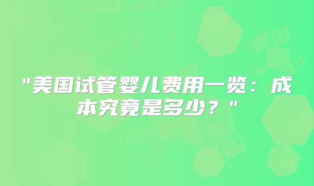 试管婴儿是一种不孕不育患者常用的生育治疗方法,而在美国,进行试管婴儿并非一项廉价的程序。试管婴儿的费用因个人情况而异,包括医生费用、药物费用、手术费用等各种因素。